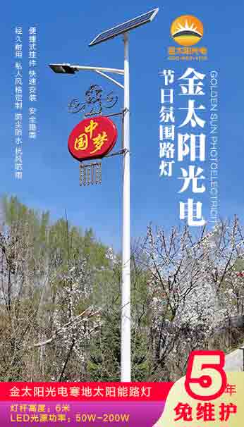 廠家直銷中國(guó)紅風(fēng)格6米太陽(yáng)能路燈¥2860元